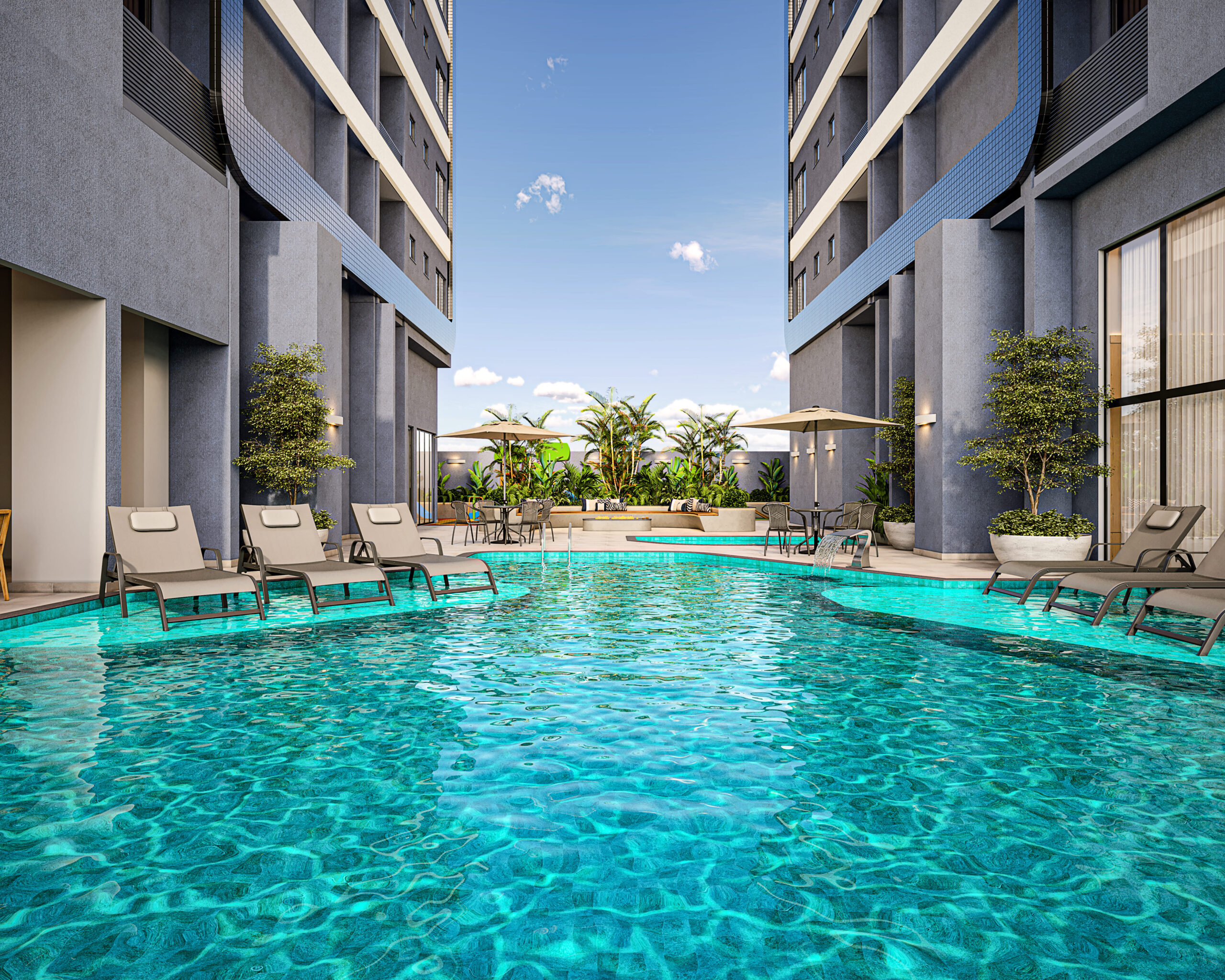 No coração desse crescimento, a BR Construtora apresenta o Twin Towers Home Club, um empreendimento que traduz a nova era habitacional: unidades que são, essencialmente, investimentos de alta rentabilidade. Com 20 pavimentos e 120 unidades residenciais distribuídas em duas torres imponentes, o projeto oferece plantas versáteis de 2 e 3 dormitórios (com suíte), todas com acabamento refinado em porcelanato e a indispensável churrasqueira a carvão — um detalhe que valoriza o convívio social brasileiro. A área de lazer, com mais de 1.100m², é um verdadeiro resort privado.